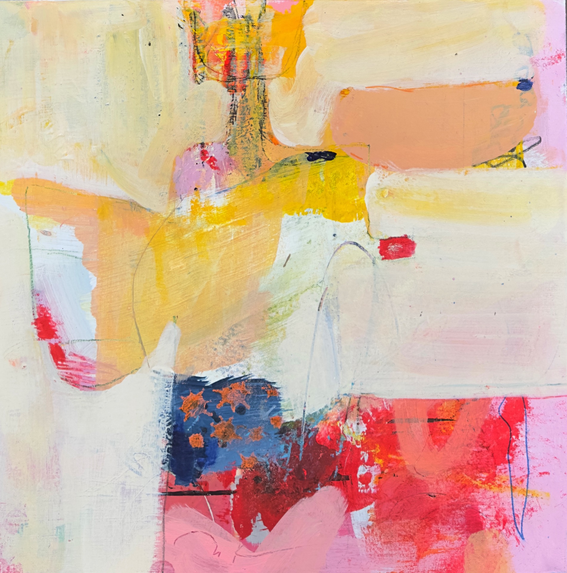 Her på siden ser du alle mine malerier samt detaljer om størrelser og priser. Farvepaletten balancerer mellem stærke og dæmpede toner, hvilket skaber en dynamisk meditativ atmosfære, som jeg holder meget af. Skriv til mig, hvis du har spørgsmål, ellers hvis du ønsker at købe et af dem. Kontakt mig